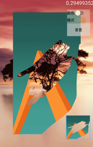 效果中的右上角,显示了一个float类型的数,它是在刮刮卡模式下,已经抹掉部分所占bitmap的比例,onMeasure()方法中有一个int[]类型的数组 bmPixels ,这个时候我们就要利用这个数组来得到这个比例。