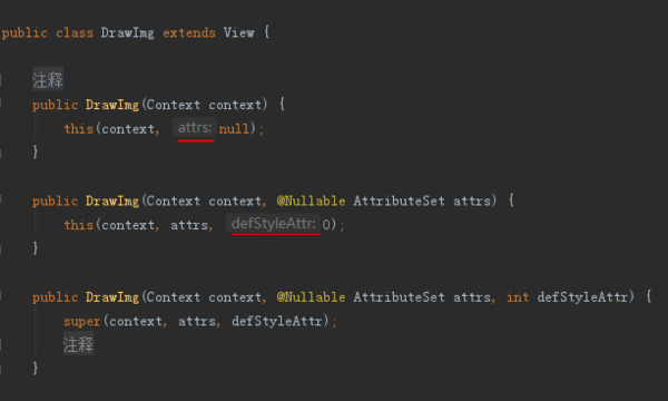 简单说一下构造方法。一个参数的构造方法是在代码中 new 时用到,2个参数的构造方法在布局xml中用到,3个参数的基本就是自定义view类中使用,大概就是这样。