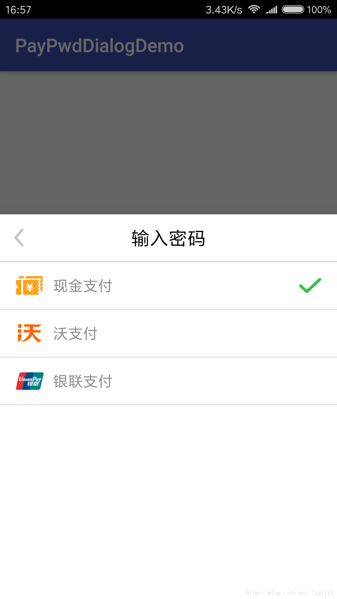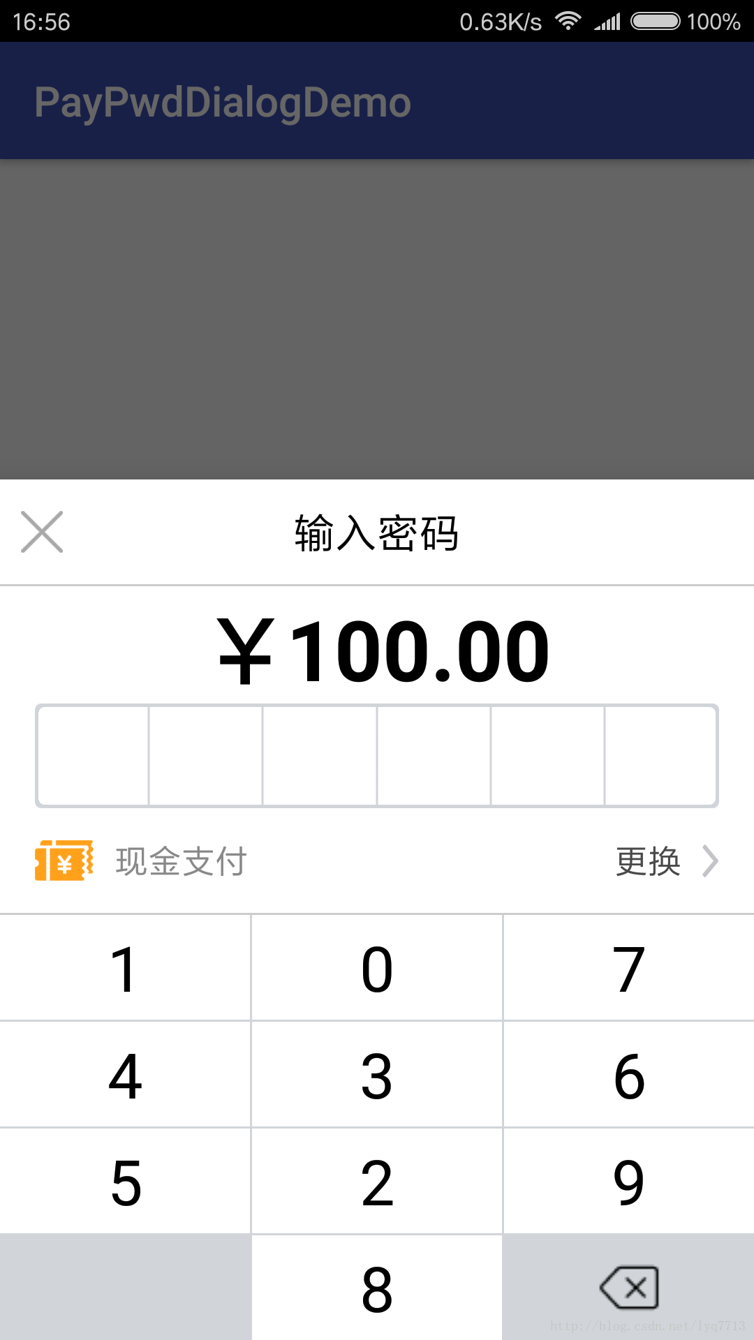 由于密码输入方式需要实现一个从底部弹出的效果,因此总体上决定采用BottomSheetDialog来进行封装,同时为了提高安全性,还应该随机生成键盘上的数字,界面如下图所示: