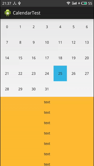 该view继承LinearLayout,日历视图和内容视图上下放置