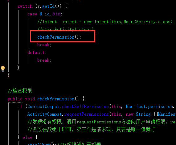 四、在button或者是imageButton的点击事件调用checkPermission方法