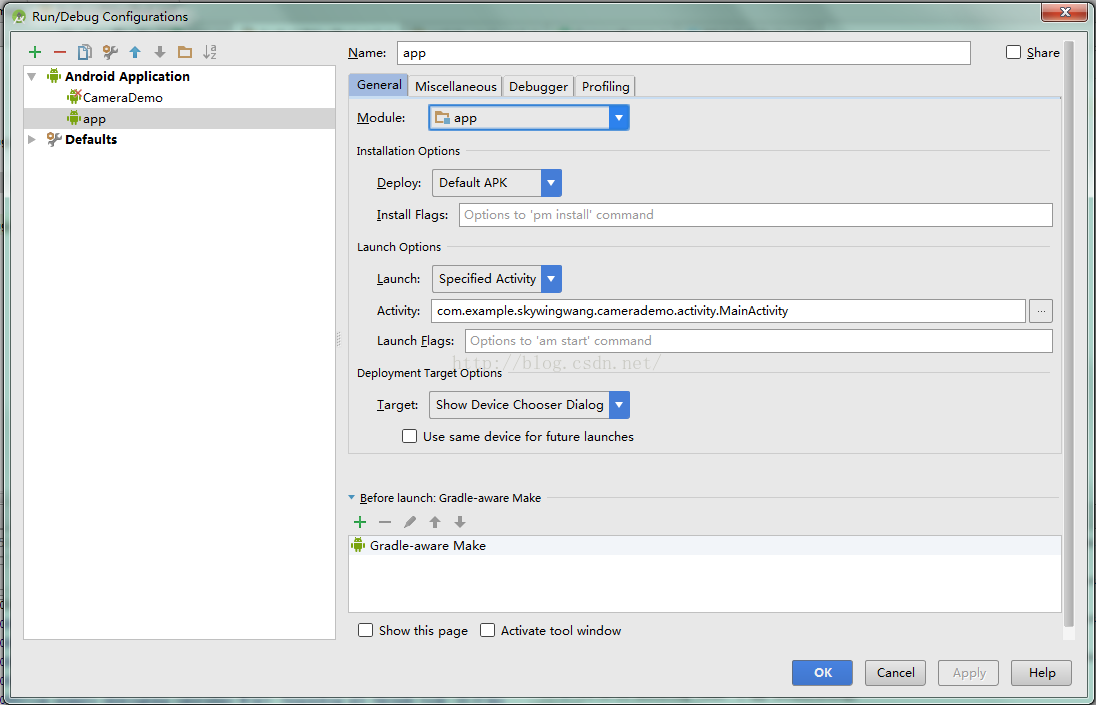 在model下拉框中选择app.如果下拉框中没有app,(可能有工程名),那么请先去设置: