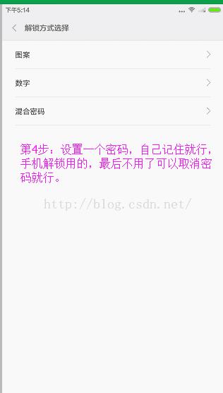 4.第四步:要求设置一个手机密码,自己设置一个,记住密码就行,最后不用了去系统-安全-密码中去掉即可;