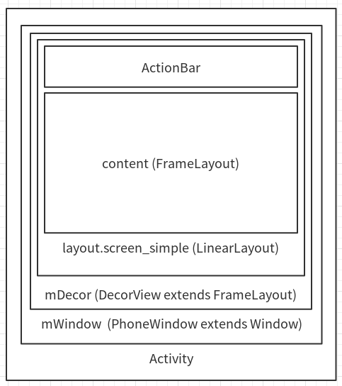 我们可以用一张图片来总结下Activity是如何管理布局的(这里假设DecorView里面添加了screen_simple这个布局):