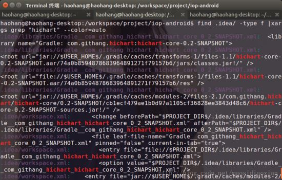 find .idea -type f |xargs grep "hichart"