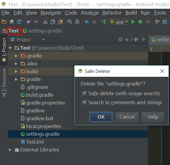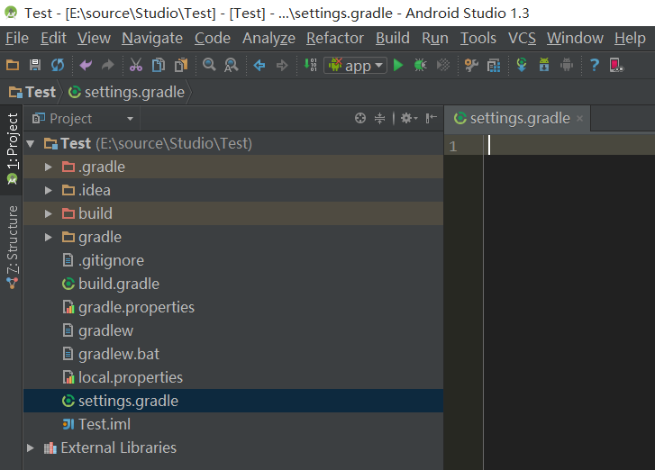 移除后,就没有“app”的module了,“settings.gradle”中也没有“app”信息了,进入本地路径查看,也没有app文件