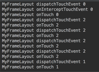 Log.d(TAG, "MyFrameLayout dispatchTouchEvent " + event.getAction());