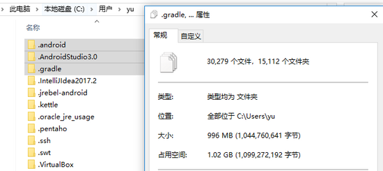 .android 是Android SDK生成的AVD(Android Virtual Device Manager)即模拟器存放路径.AndroidStudio3.0 是Android Studio的配置文件夹,主要存放一些Android Studio设置、插件、项目的缓存信息.gradle 是构建工具Gradle的配置文件夹,也会存储一些项目的构建缓存信息注意 ,在进行以下修改前,建议先把拷贝到新的路径,以作备份