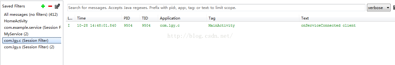 第一、我们点击绑定服务,可以观察到后台logcat日志信息: