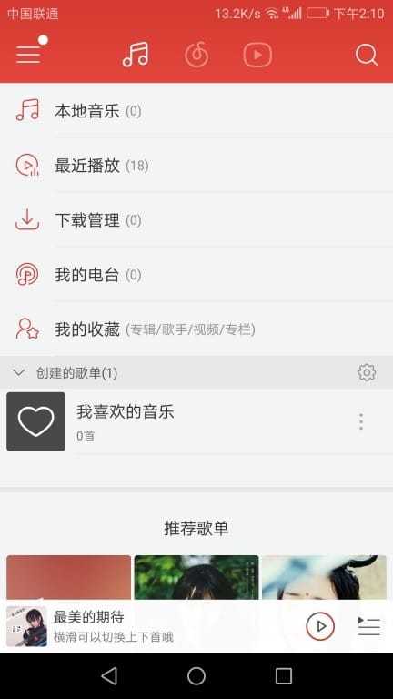 对于单层 ViewPager + Fragment 可能是我们最常用的页面结构了,如网易云音乐的首页顶部的是三个 tab ,我们那网易云音乐作为例子: