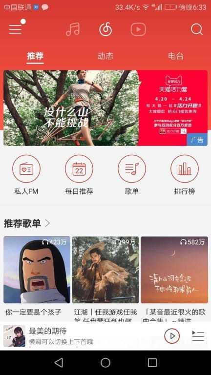 对于双层 ViewPager 嵌套我们也拿网易云来举例: