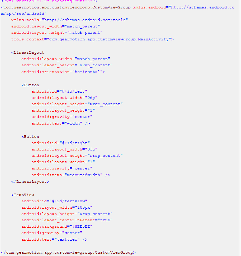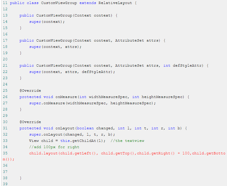 3.下面我们自定义一个简单的ViewGroup,在layout阶段改变left,right的值,观察getMeasuredWidth()和getWidth()方法之间的区别。