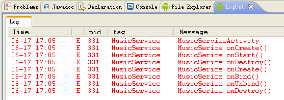 Android中的服务,它与Activity不同,它是不能与用户交互的,不能自己启动的,运行在后台的程序,如果我们退出应用时,Service进程并没有结束,它仍然在后台运行,例如我们打开一个音乐播放器来听音乐,在听音乐的同时也想做下其它的事情,比如上网聊Q、或者上网浏览新闻之类的事情。这样的话,我们就需要用到Service服务了。下面我们以一个简单的音乐播放器的实例来说明下Service的生命周期和Service的使用。