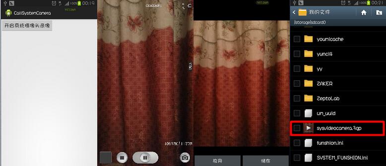 既然和拍摄照片的流程一样,这里就不再累述了,直接上Demo。在Demo中通过一个Button启动一个系统现有相机拍摄视频,最后保存在SD卡上。