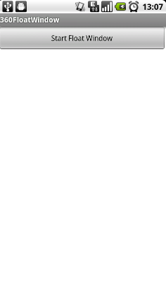 <RelativeLayout xmlns:android="http://schemas.android.com/apk/res/android" xmlns:tools="http://schemas.android.com/tools" android:layout_width="fill_parent" android:layout_height="fill_parent" tools:context=".MainActivity" > <Button android:id="@+id/start_float_window" android:layout_width="fill_parent" android:layout_height="wrap_content" android:text="Start Float Window" > </Button> </RelativeLayout>