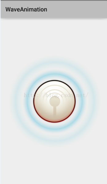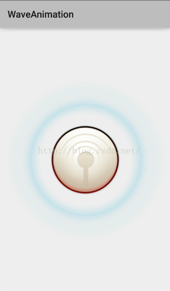 <RelativeLayout xmlns:android="http://schemas.android.com/apk/res/android" android:layout_width="match_parent" android:layout_height="match_parent" > <ImageView android:id="@+id/wave1" android:layout_width="150dp" android:layout_height="150dp" android:layout_centerInParent="true" android:background="@drawable/wave" /> <ImageView android:id="@+id/wave2" android:layout_width="150dp" android:layout_height="150dp" android:layout_centerInParent="true" android:background="@drawable/wave"/> <ImageView android:id="@+id/wave3" android:layout_width="150dp" android:layout_height="150dp" android:layout_centerInParent="true" android:background="@drawable/wave" /> <ImageView android:id="@+id/normal" android:layout_width="166dp" android:layout_height="166dp" android:layout_centerInParent="true" android:background="@drawable/normal" /> </RelativeLayout>