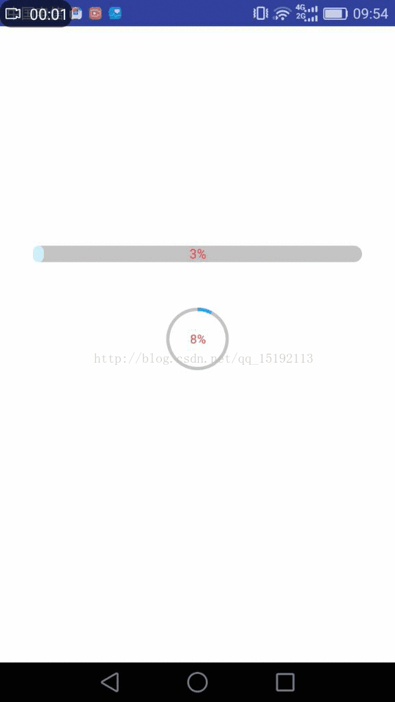 <?xml version="1.0" encoding="utf-8"?> <LinearLayout xmlns:android="http://schemas.android.com/apk/res/android" xmlns:app="http://schemas.android.com/apk/res-auto" android:layout_width="match_parent" android:layout_height="match_parent" android:background="@android:color/white" android:gravity="center_horizontal" android:orientation="vertical"> <com.customeview2.GradientProgressBar android:id="@+id/gradientProgressBar" android:layout_width="300dp" android:layout_height="15dp" android:layout_marginLeft="10dp" android:layout_marginRight="10dp" android:layout_marginTop="200dp" app:bgColor="#C3C3C3" app:endColor="#25B7FA" app:lineWidth="300dp" app:loadSpeed="10" app:rectRadius="20dp" app:startColor="#D2EEFB" app:textColor="@android:color/holo_red_light" app:textSize="12sp" /> <com.customeview2.RoundProgressBar android:id="@+id/roundProgressBar" android:layout_width="60dp" android:layout_height="60dp" android:layout_below="@+id/gradientProgressBar" android:layout_gravity="center" android:layout_marginLeft="10dp" android:layout_marginRight="10dp" android:layout_marginTop="40dp" app:bgColorRound="#C3C3C3" app:circleWidthRound="3dp" app:currentColorRound="#25B7FA" app:loadSpeedRound="10" app:textColor="@android:color/holo_red_light" app:textColorRound="@android:color/holo_red_light" app:textSizeRound="11sp" /> </LinearLayout>