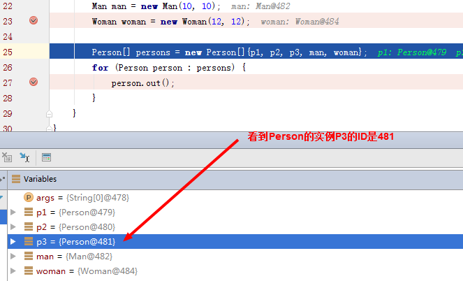 Person[] persons = new Person[]{p1, p2, p3, man, woman};