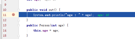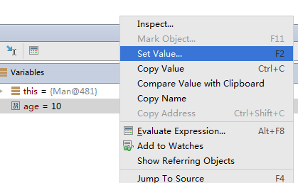 首先设置Class Filter,内容为要过滤类的完整路径,设置为只有Man类调用方法断点生效,下图age==10,证明确实是Man类调用的方法。