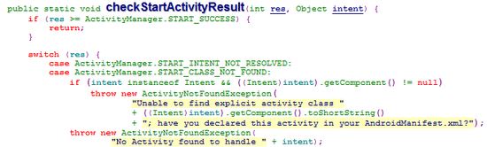Instrymentation.checkStartActivityResult
