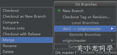 也是进行本地分支 dev1 合并。
