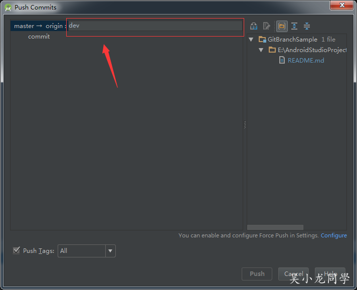 改成 dev,点击 Enter,然后 Push,这样远程就有了分支 dev。