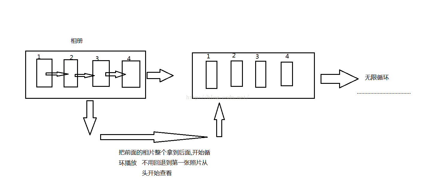 * 第二种方法,无限循环播放,每次都把所有相片,放到后面查看