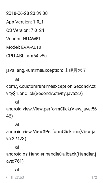 Toast.makeText(CrashActivity.this,"出现异常了",Toast.LENGTH_LONG).show();