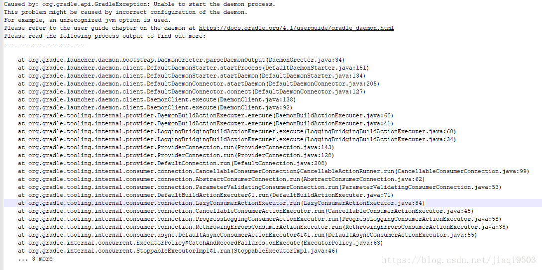 今天写项目突然出现了无法启动Gradle的bug,如下图