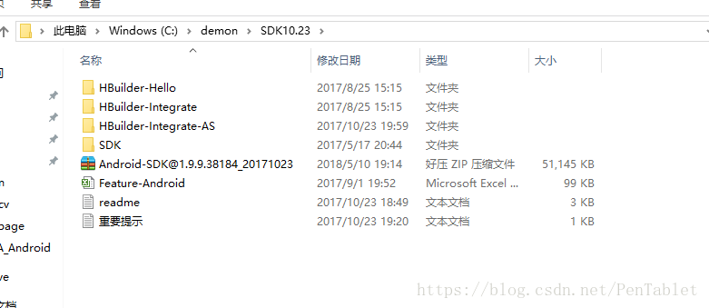 在官网下载android版的SDK,我下载的SDK版本是10.23的,且要准备好自己要跳转的hbuilder项目文件。