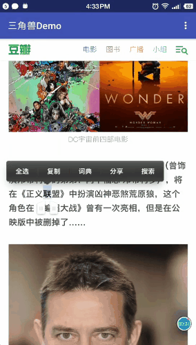 BottomSheetDialog是BottomSheet效果实现的一种更加通用的方法,比如我们需要在不同的页面实现长按文本弹出卡片列表效果,下面给出实现。