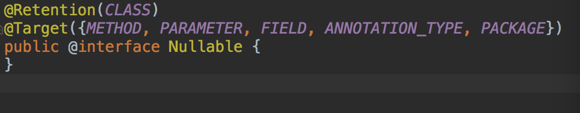 如上图所示,@Nullable可用于注解方法,参数,类成员,注解,包声明中,常用例子如下所示: