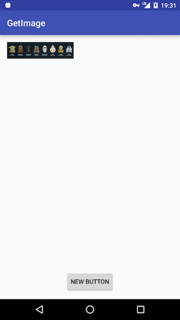 布局文件中就一个 ImageView 用来显示图片,一个 Button 用来获取图片。