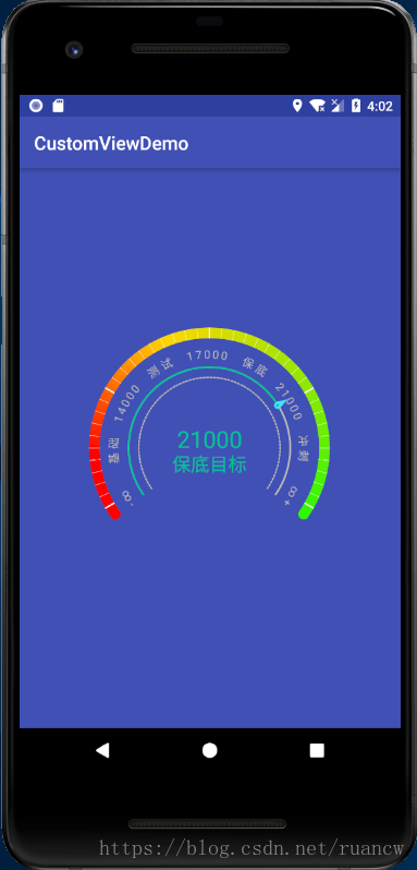 前言:最近一直在学自定义View的相关知识,感觉这在Android中还是挺难的一块,当然这也是每个程序员必经之路,正好公司项目要求实现类似仪表盘的效果用于直观的显示公司数据,于是就简单的写了个demo,记录实现的过程。上篇《Android自定义View实现圆弧进度效果》简单记录了圆弧及文字的绘制,渐变色的仪表盘效果将更加升入的介绍canvas及paint的使用(如画布旋转,paint的渐变色设置等)。