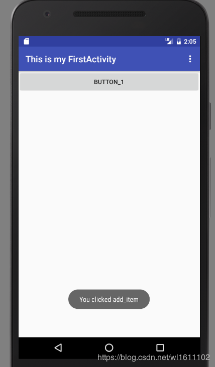 Toast.makeText(FirstActivity.this,"You clicked add_item",Toast.LENGTH_SHORT).show();