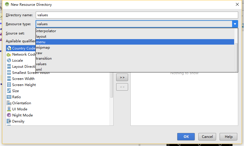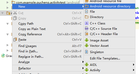 1.在res上面右键->New->Android resource directory
