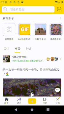 我这里遇到的需求是即刻首页的样式(可参考即刻5.4.2版本),除了要有 AppbarLayout 折叠效果之外还要在 AppbarLayout 顶部展示搜索框和刷新动画。这里的滑动逻辑是: