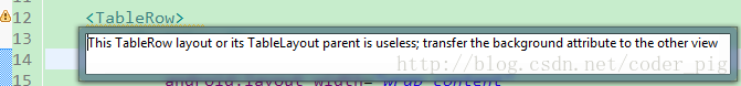 相信大家在使用这个这TableLayout的TableRow的时候会遇到这个警告: