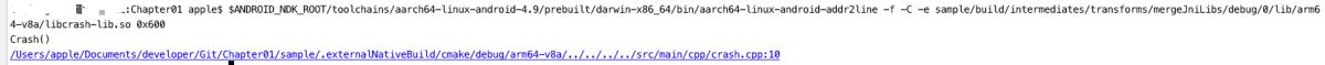 而且aarch64-linux-android-addr2line的路径、libcrash-lib.so的路径要按照电脑、项目中的路径保持一致