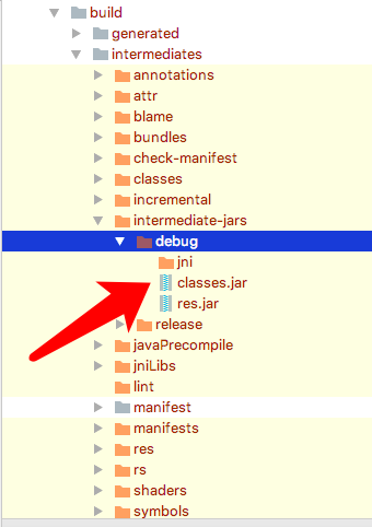 from('build/intermediates/intermediate-jars/debug')//修改这里后就能导出.jar了