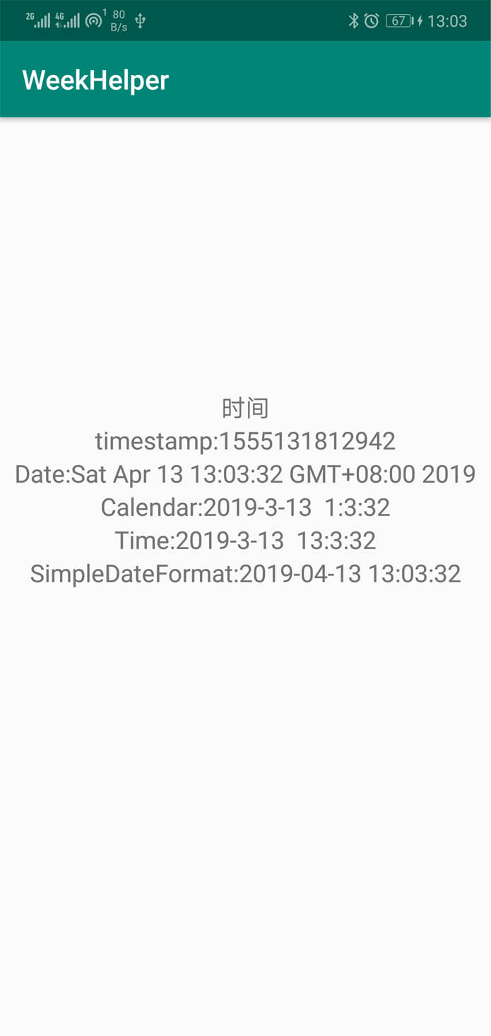 //Calendar TextView calendar_show = findViewById(R.id.calendar_show); Calendar calendar = Calendar.getInstance(); int year = calendar.get(Calendar.YEAR); int month = calendar.get(Calendar.MONTH); int day = calendar.get(Calendar.DATE); int hour = calendar.get(Calendar.HOUR); int minute = calendar.get(Calendar.MINUTE); int second = calendar.get(Calendar.SECOND); String calendar_show_string = "Calendar:" + year + "-" + month + "-" + day + " " + hour + ":" + minute + ":" + second; calendar_show.setText(calendar_show_string);
