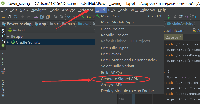 第一步:先点击Build选择GenerateSigned APK