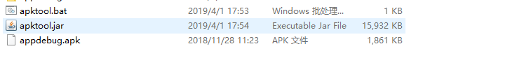 此时我们的E:/androidsafe文件夹下只有这三个文件,同时我们也需要把下载的第二个文件apktool-2.4.0.jar更改成apktool.jar,不然是无法运行这个工具的。同时把需要反编译的apk文件移动到这个文件夹下。