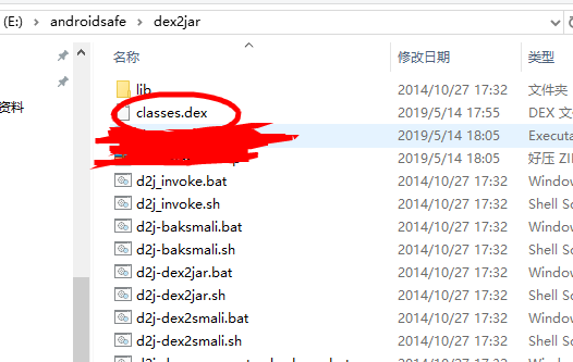 2.将刚刚所得到的classes.dex文件剪切到dex2jar文件夹下,如下图所示: