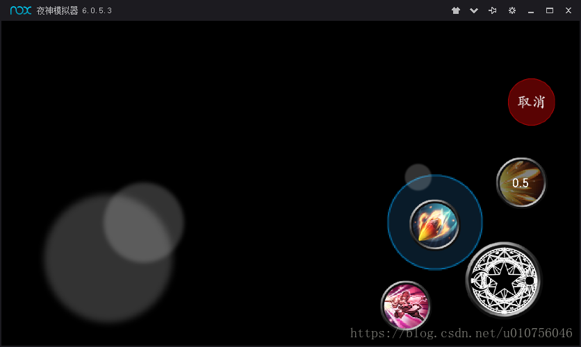 我们这个摇杆一共就五个按钮,一个移动摇杆、三个技能摇杆和一个普通攻击按钮