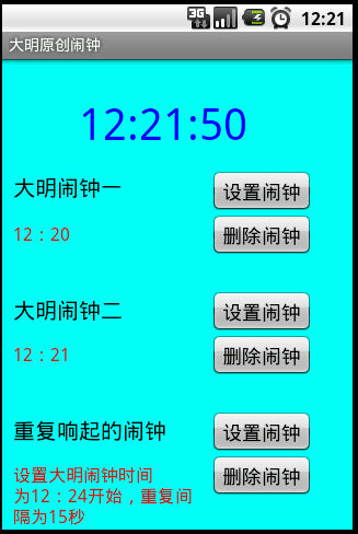最近写了个闹钟的程序,看到SharedPreferences在一个程序中可以共享数据,SharedPreferences是一个轻量级的键值存储机制,只可以存储基本数据类型。我就拿来用用,没想到SharedPreferences太好了,真是轻量级的保存数据的好的工具,比sqlite好用多了!以后我又多了一种编程思想了,呵呵,所以现在分享给大家,特别注意这点:这个无法直接在多个程序间共享Preferences数据。程序关闭再打开时间仍然保留你上次设置的时间。这就是Preferences的作用!