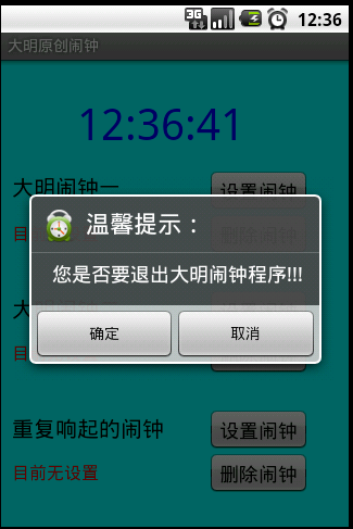 .setMessage("您是否要退出大明闹钟程序!!!")
