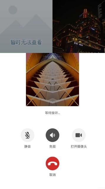 下面是三个人通话时候的效果,其他的可以参考微信多人音视频通话界面。