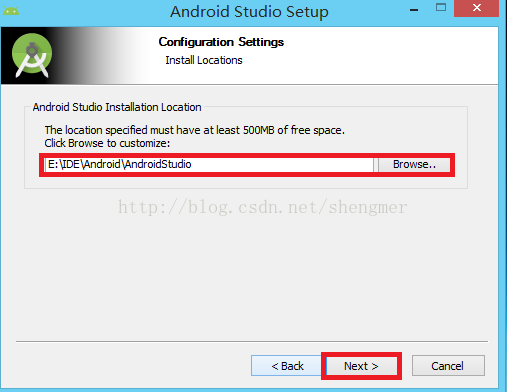 进入下一个界面,如图,这里选择 Android studio 的安装目录,修改后,点击Next;