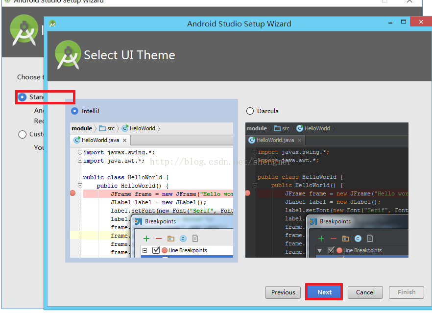进入下一个界面,选择Standard,然后选择一下是白色主题,还是黑色主题,(选择自己喜欢的就可以),之后点击Next;